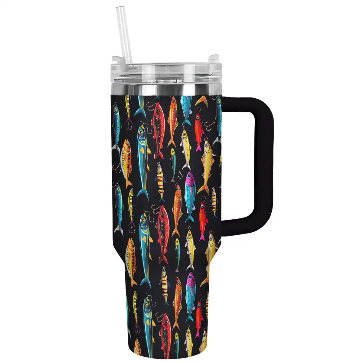 Colorful Fishing Bait Custom Stanley Cup 40 oz Tumbler With Handle