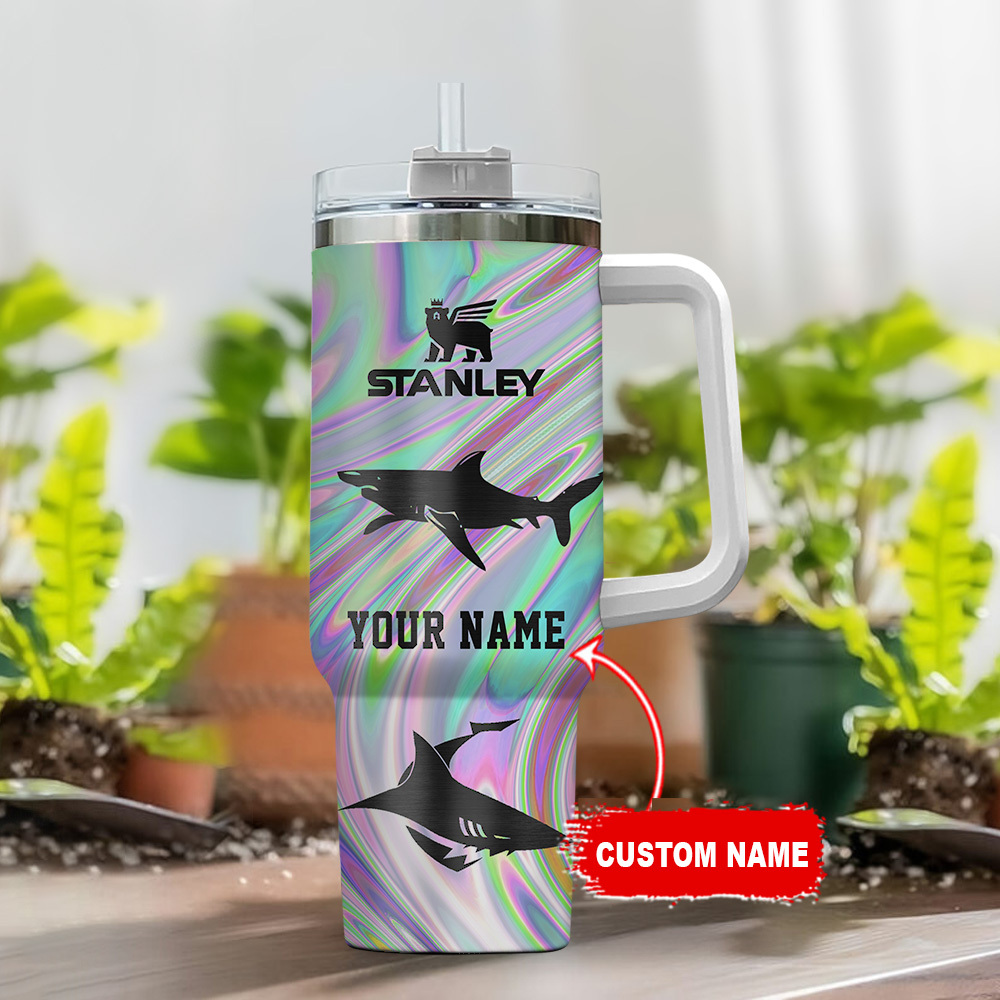 Cronulla-Sutherland Sharks Nrl Hologram Effect Custom Stanley Quencher 40Oz Stainless Steel Tumbler With Handle