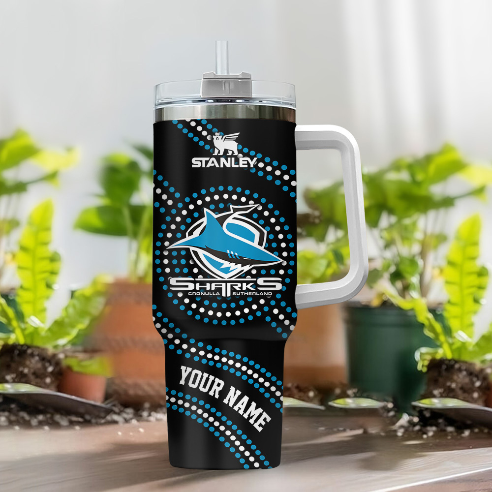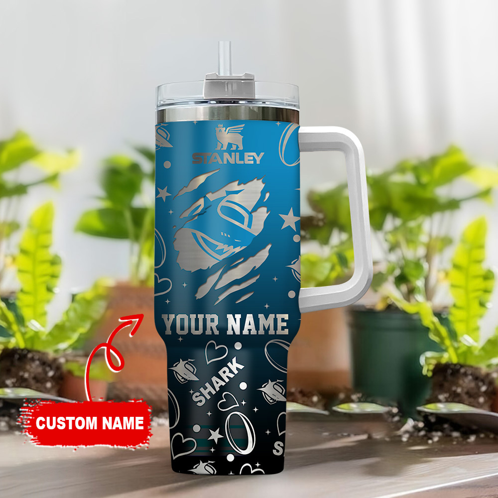 Cronulla-Sutherland Sharks Nrl Custom Stanley Quencher 40Oz Stainless Steel Tumbler With Handle