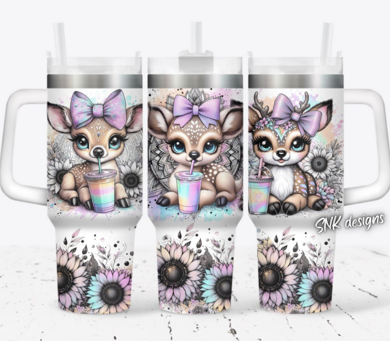 Cute Deer Flower Custom Stanley Cup 40 oz Tumbler With Handle
