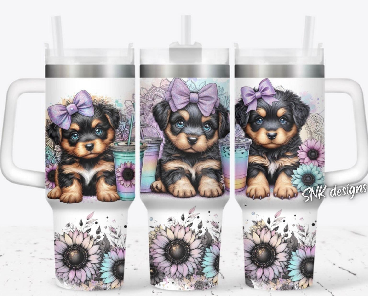 Cute Dog Flower Custom Stanley Cup 40 oz Tumbler With Handle