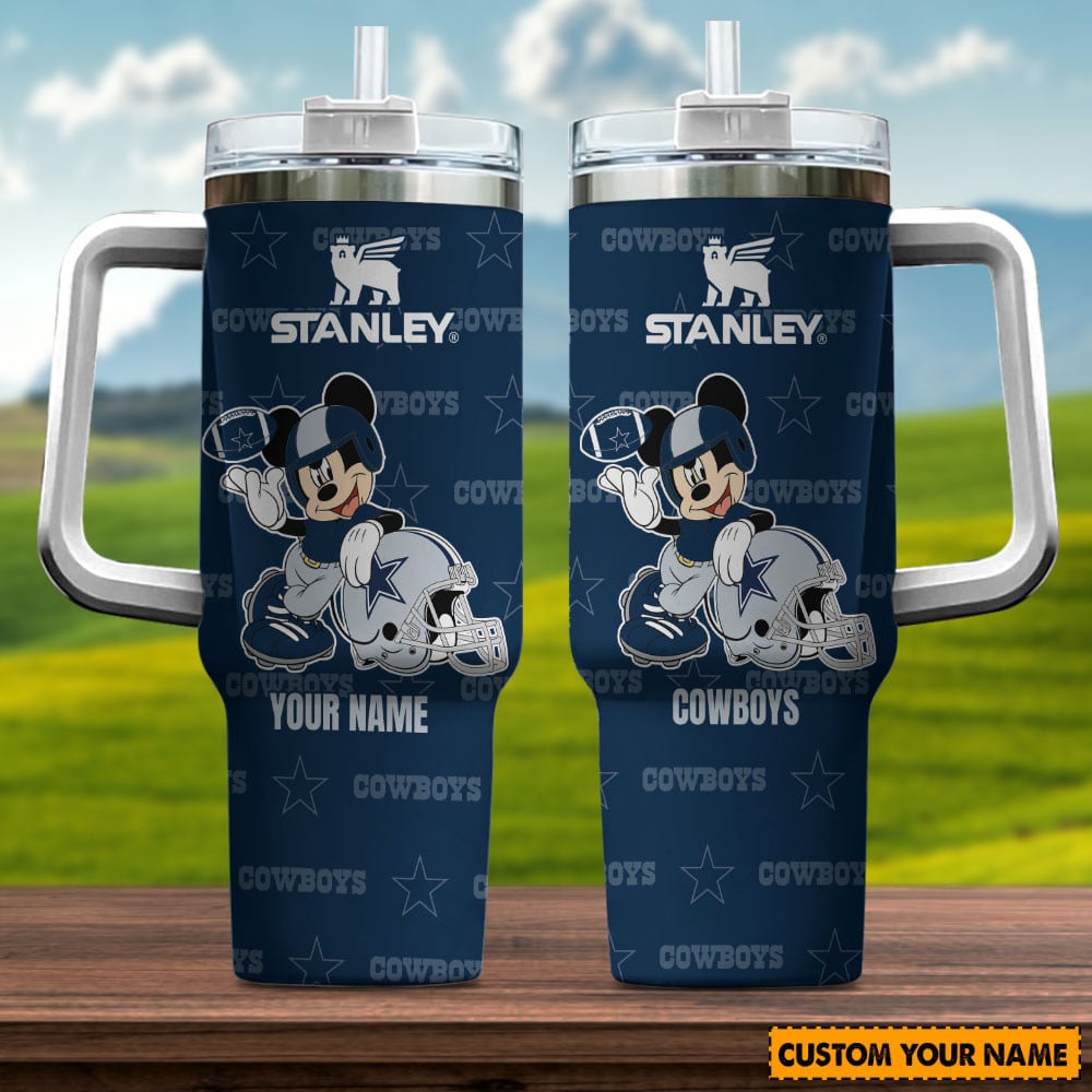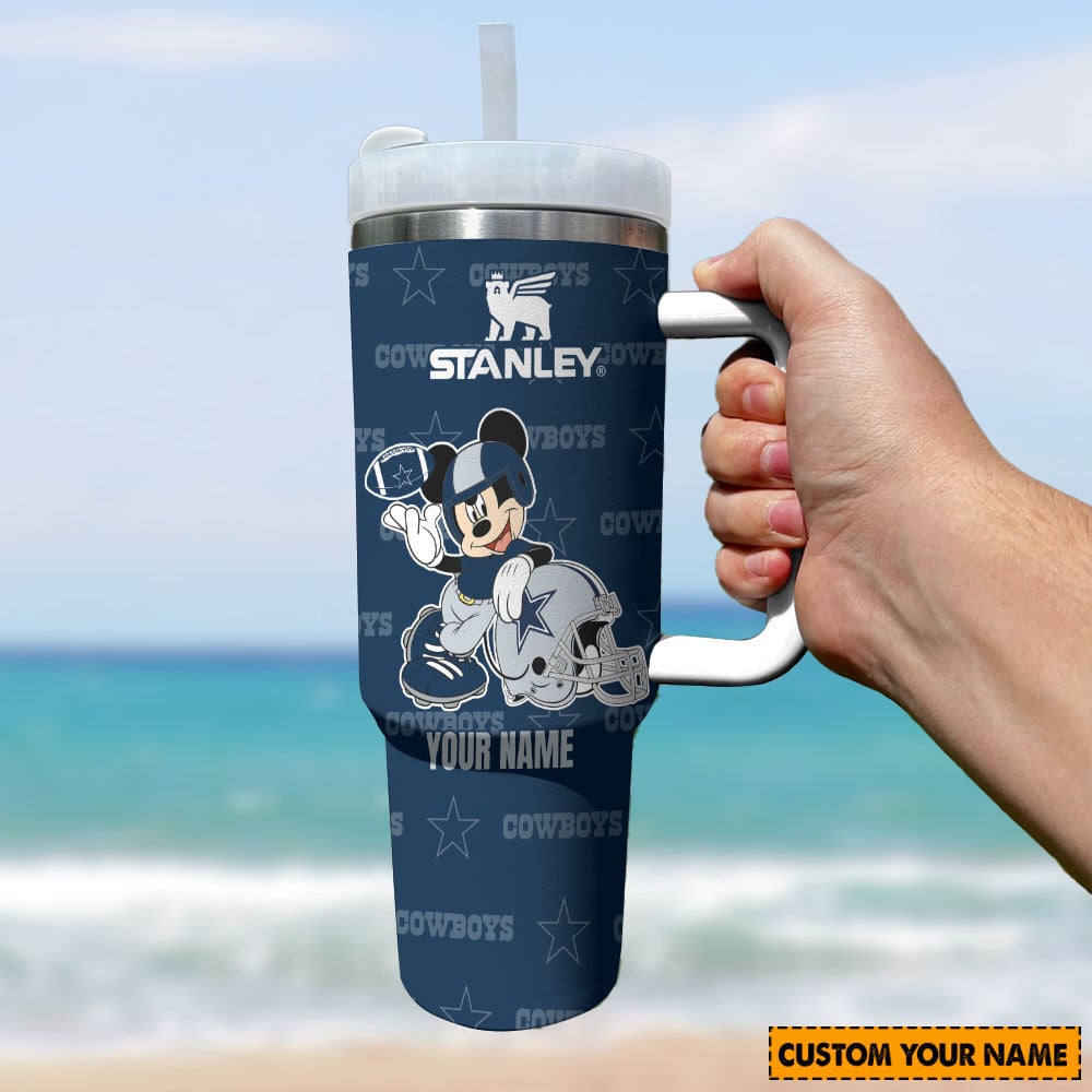 Dallas Cowboys Nfl Mickey Mouse Custom Stanley Quencher 40Oz Stainless Steel Tumbler With Handle