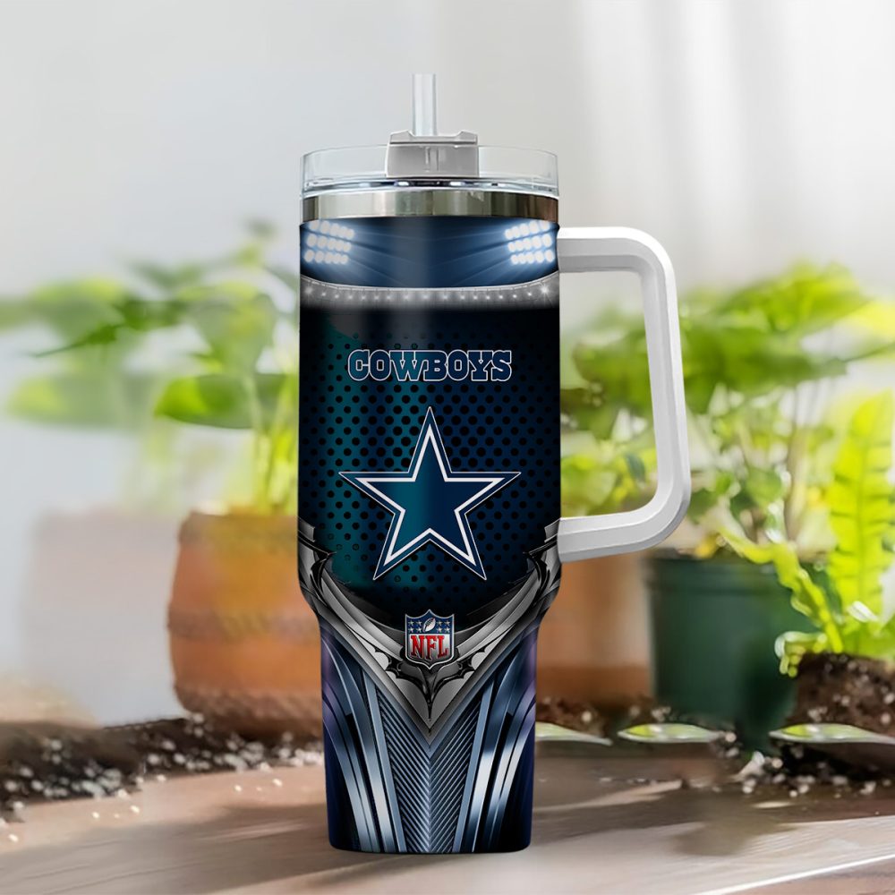 Dallas Cowboys Nfl Silver Logo Custom Stanley Quencher 40Oz Stainless Steel Tumbler With Handle