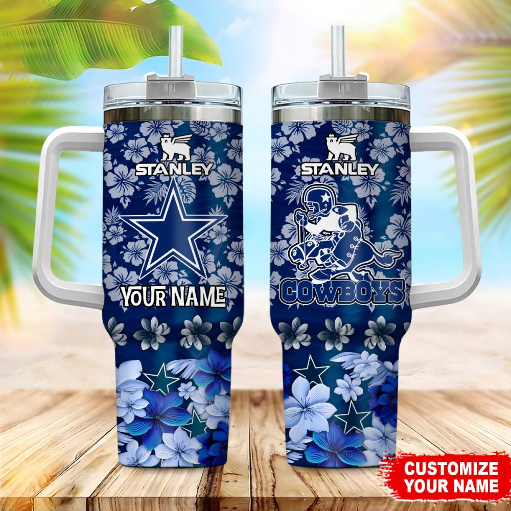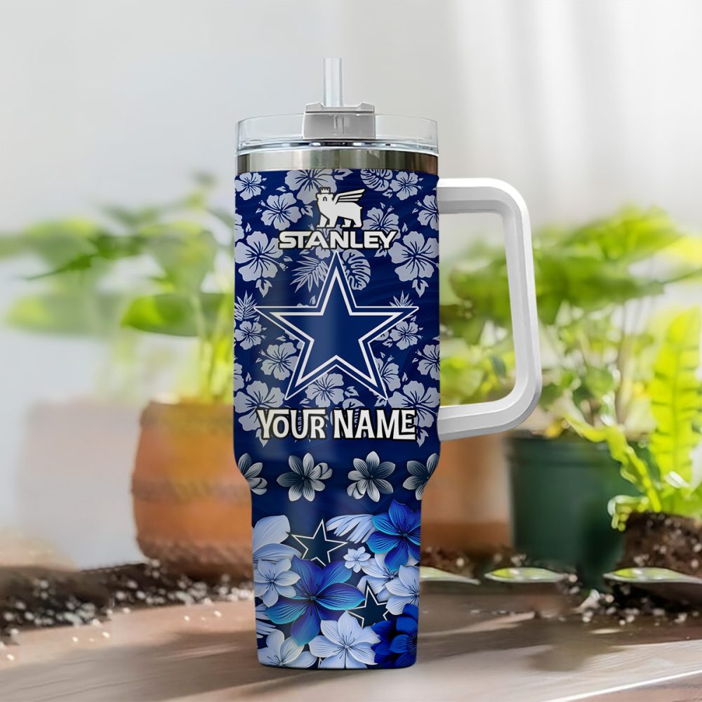 Dallas Cowboys Nfl Tropical Floral Custom Stanley Quencher 40Oz Stainless Steel