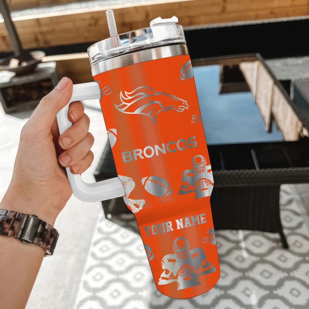 Denver Broncos Nfl Custom Stanley Quencher 40Oz Stainless Steel Tumbler