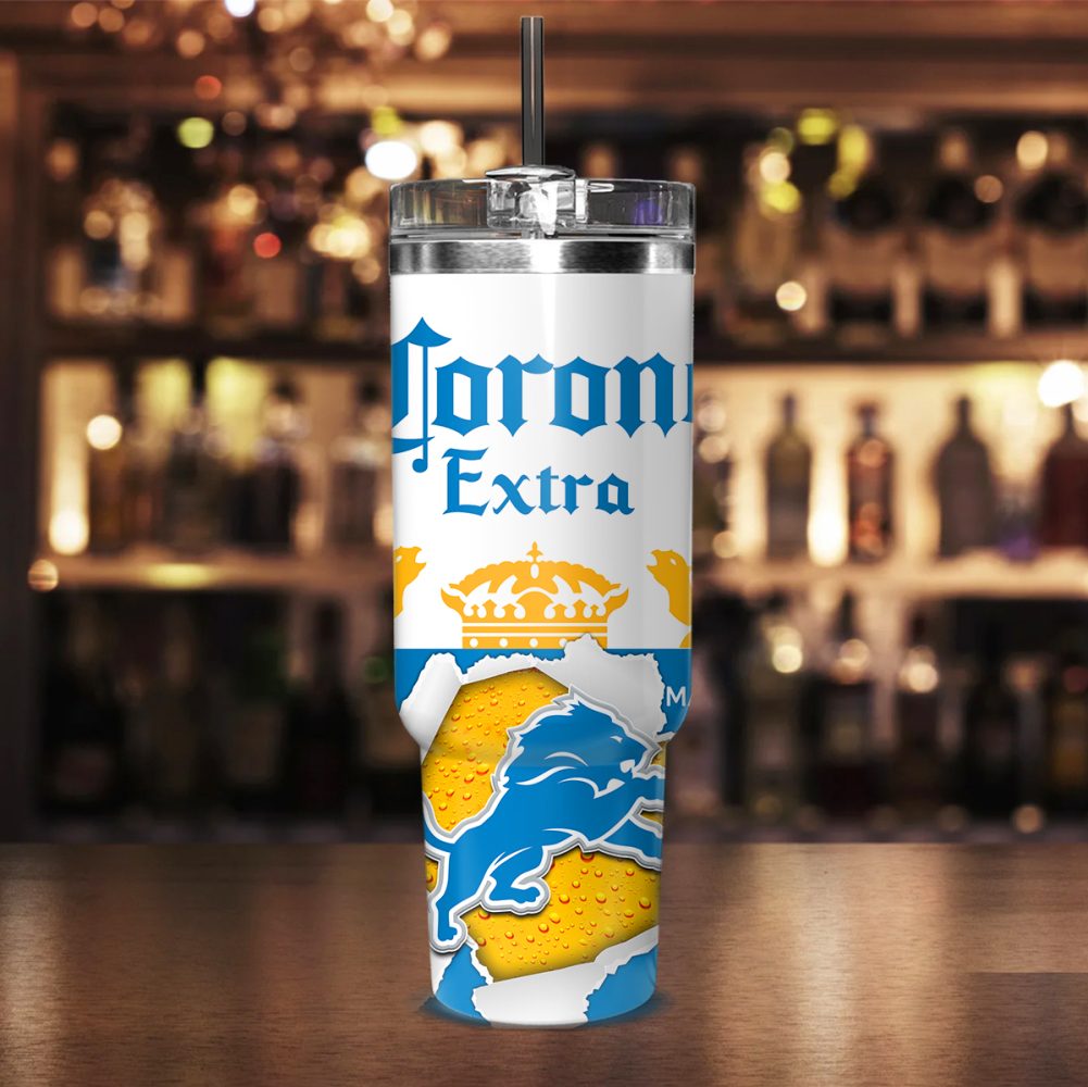 Detroit Lions Nfl Corona Extra Custom Stanley Quencher 40Oz Stainless Steel Tumbler With Handle
