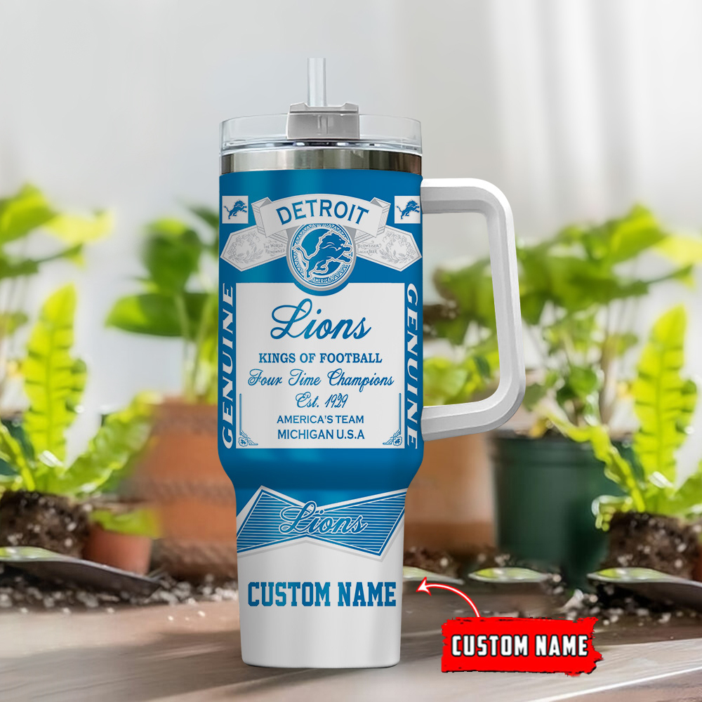 Detroit Lions Nfl Kings Of Football Custom Stanley Quencher 40Oz Stainless Steel Tumbler With Handle