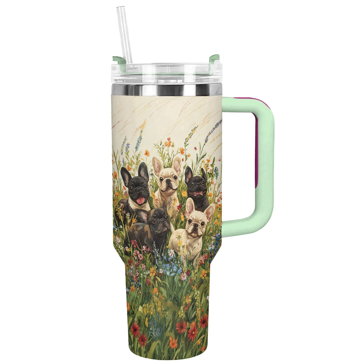 Floral Frenchie Bulldog Adventure Custom Stanley Cup 40 oz Tumbler With Handle