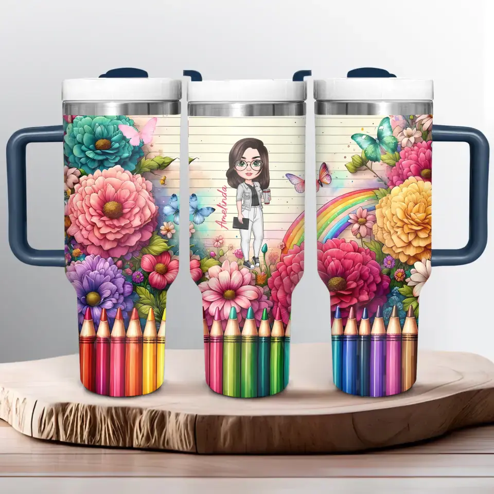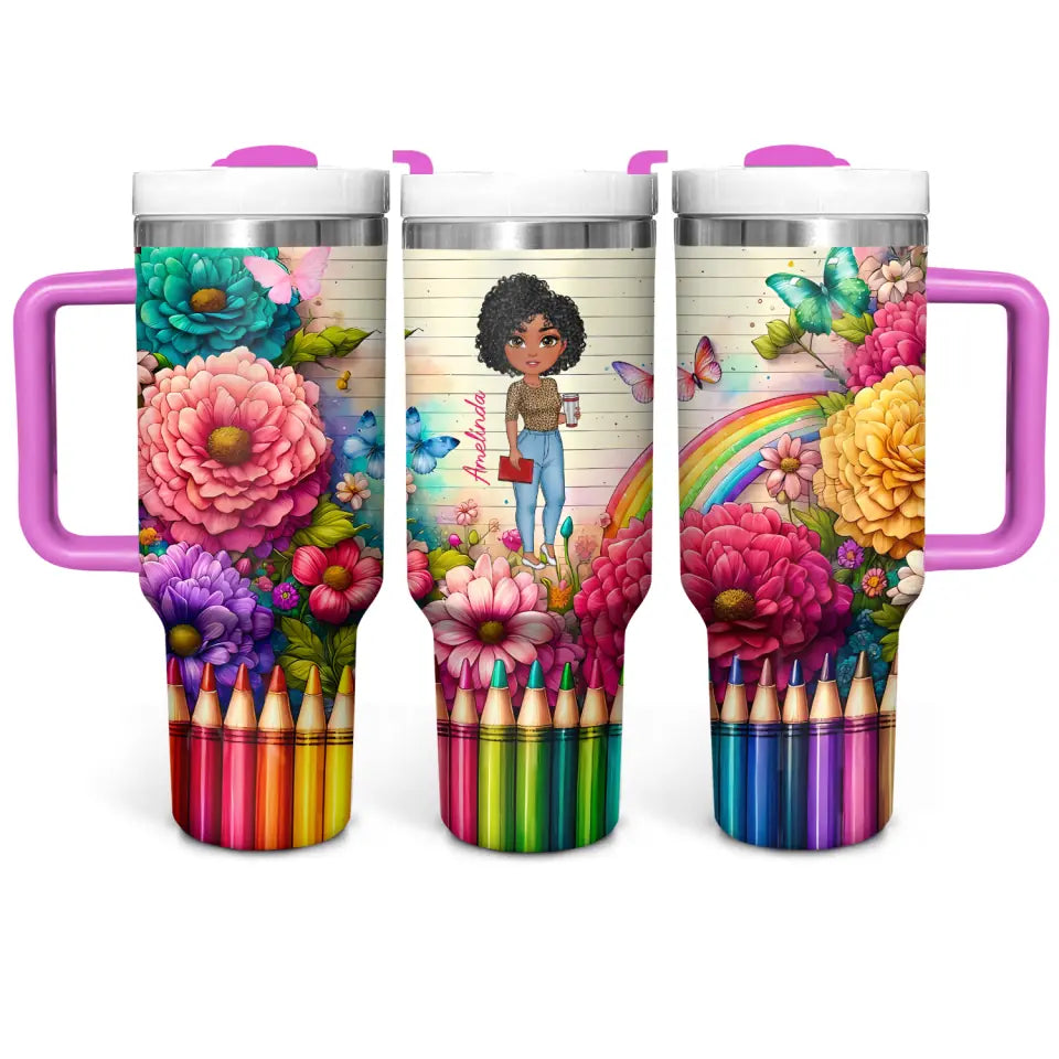 Floral Fantasy Teacher Custom Stanley Cup 40 oz Tumbler With Handle