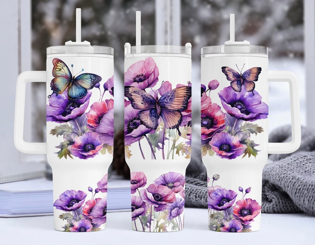 Flowers And Butterflies Custom Stanley Cup 40 oz Tumbler With Handle