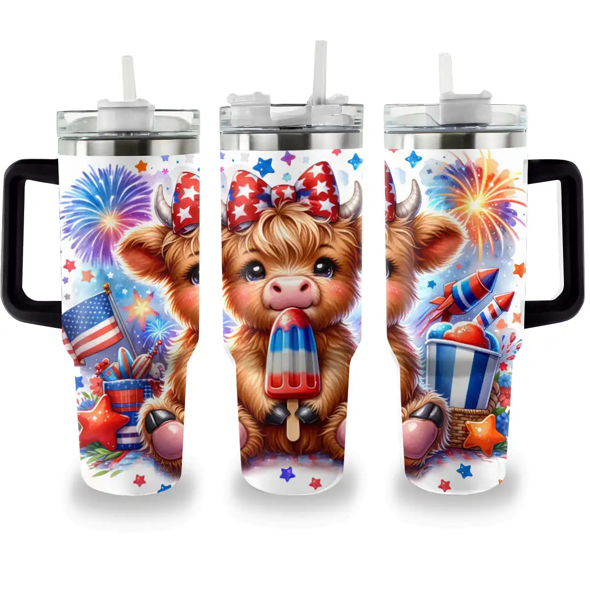 Fourth of July Cow Custom Stanley Cup 40 oz Tumbler With Handle