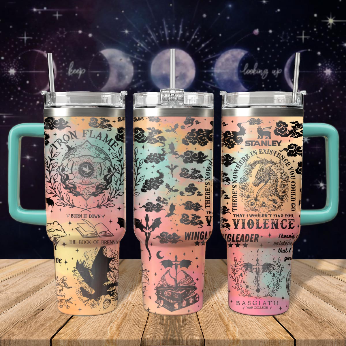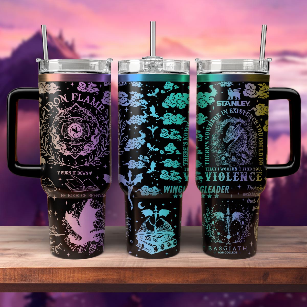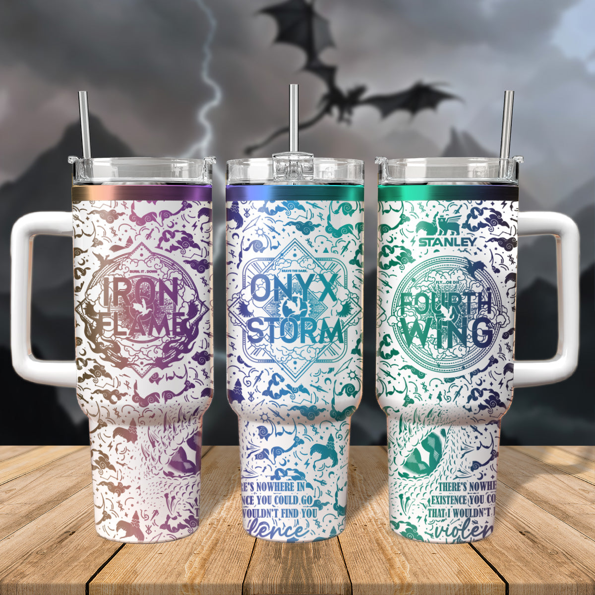 Fourth Wing Iron Flame Onyx Storm Custom Stanley Cup 40 oz Tumbler With Handle