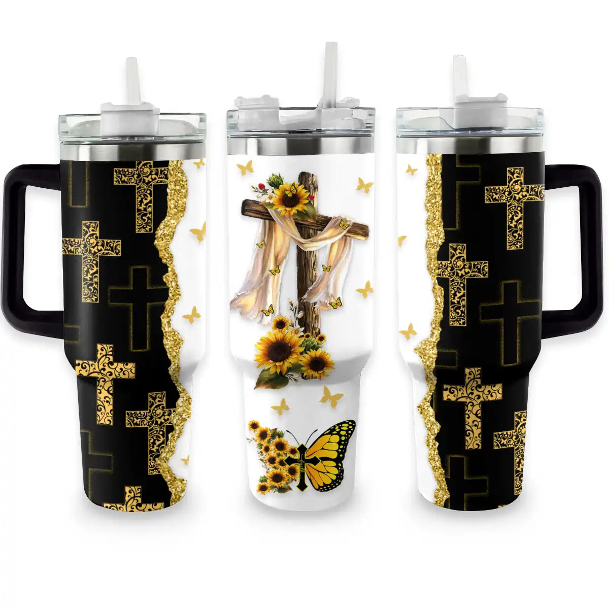 God Faith Flutter Custom Stanley Cup 40 oz Tumbler With Handle