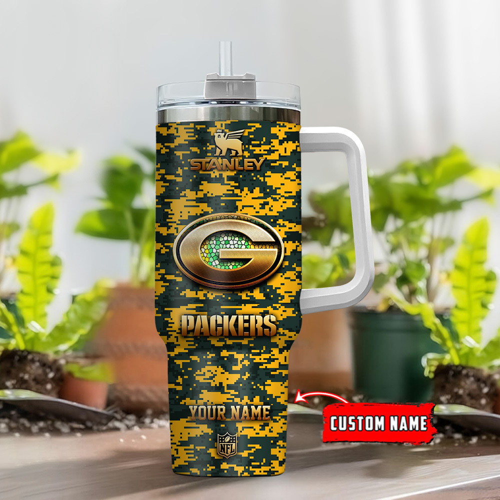Green Bay Packers Nfl Camouflage Custom Stanley Quencher 40Oz Stainless Steel Tumbler With Handle