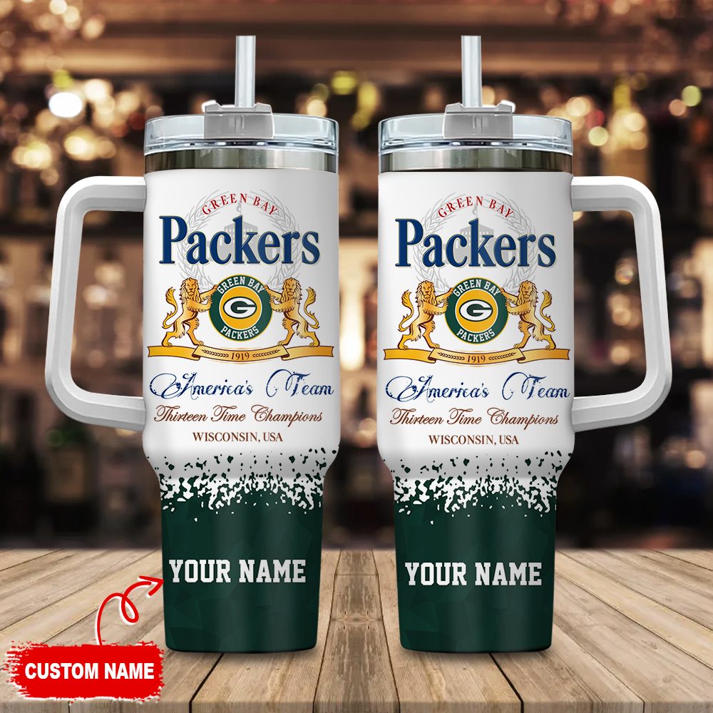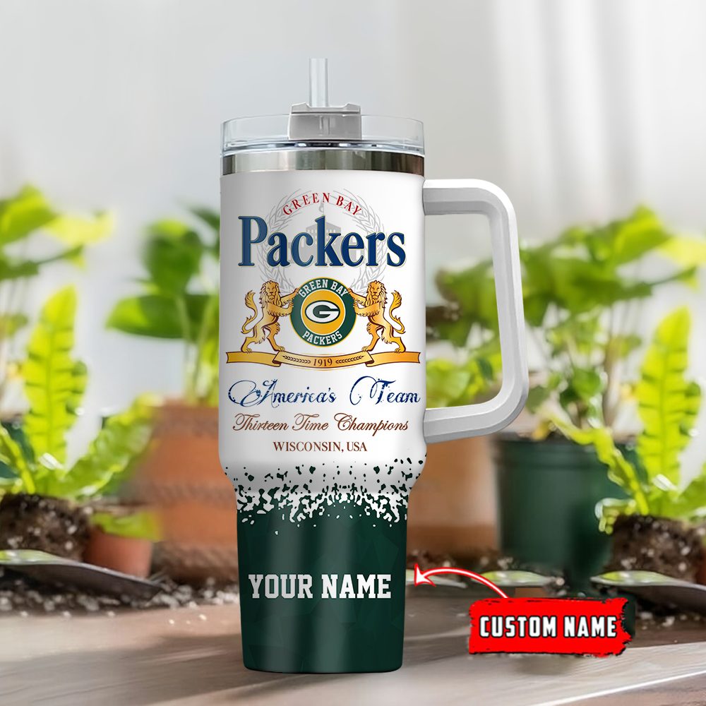 Green Bay Packers Nfl 3D Logo Custom Stanley Quencher 40Oz Stainless Steel Tumbler With Handle