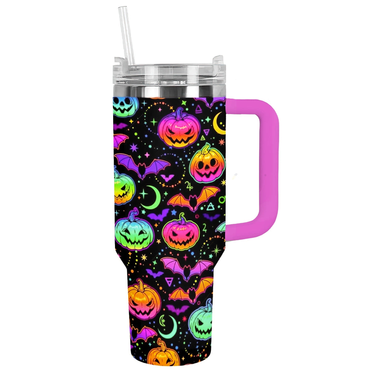 Halloween Neon Pumpkins Custom Stanley Cup 40 oz Tumbler With Handle