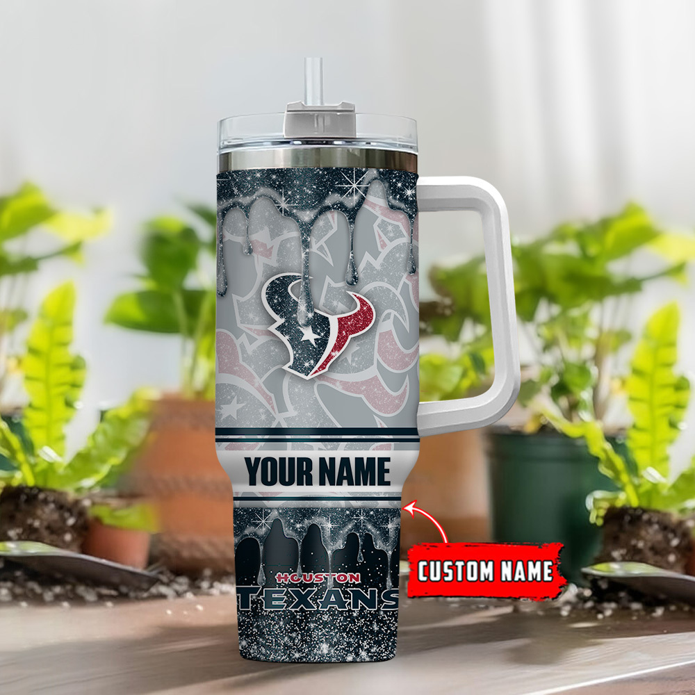Houston Texans Nfl Glitter Custom Stanley Quencher 40Oz Stainless Steel Tumbler With Handle