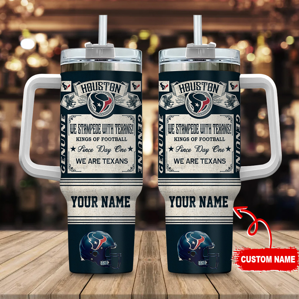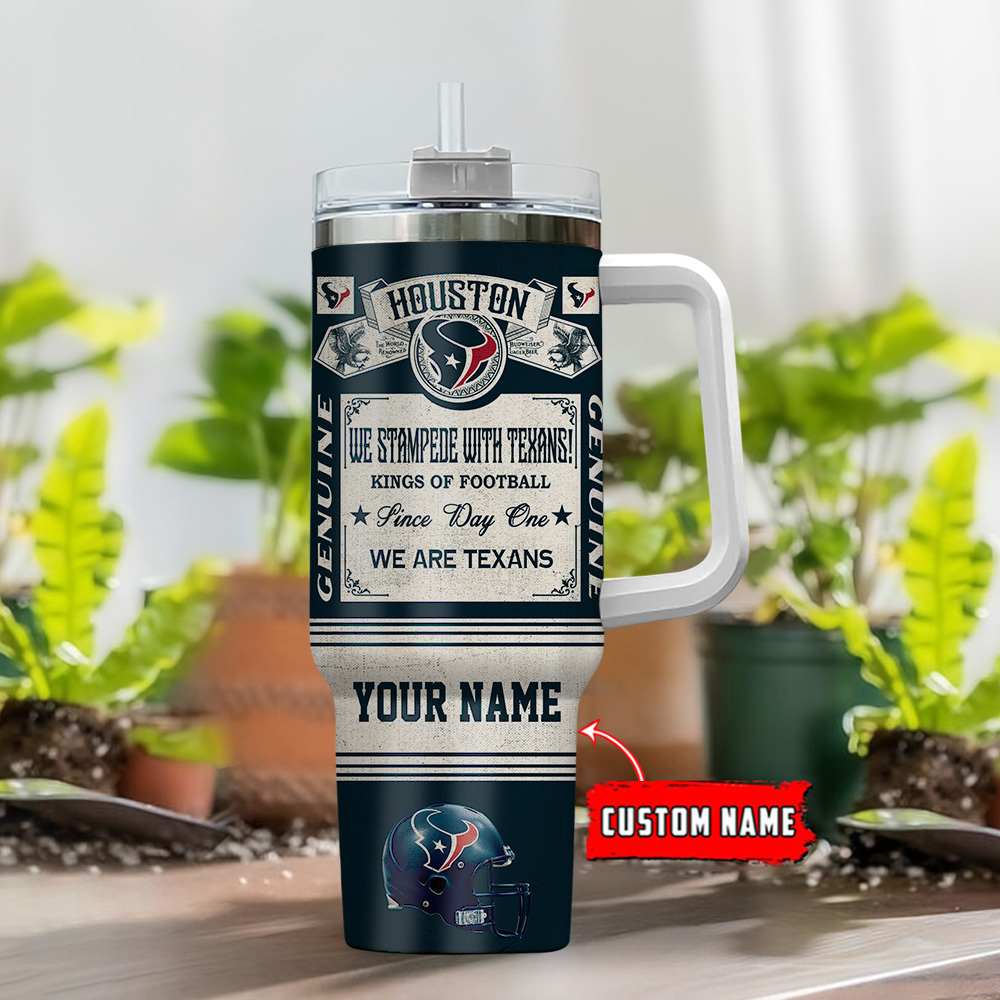 Houston Texans Nfl Vintage Kings Of Football Custom Stanley Quencher 40Oz Stainless Steel Tumbler With Handle
