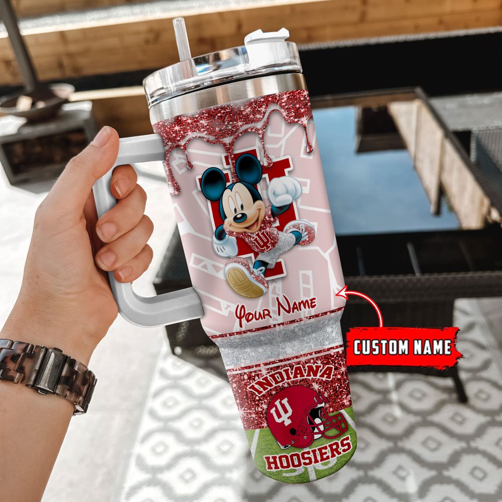 Indiana Hoosiers Ncaa Mickey Mouse Custom Stanley Quencher 40Oz Stainless Steel Tumbler With Handle