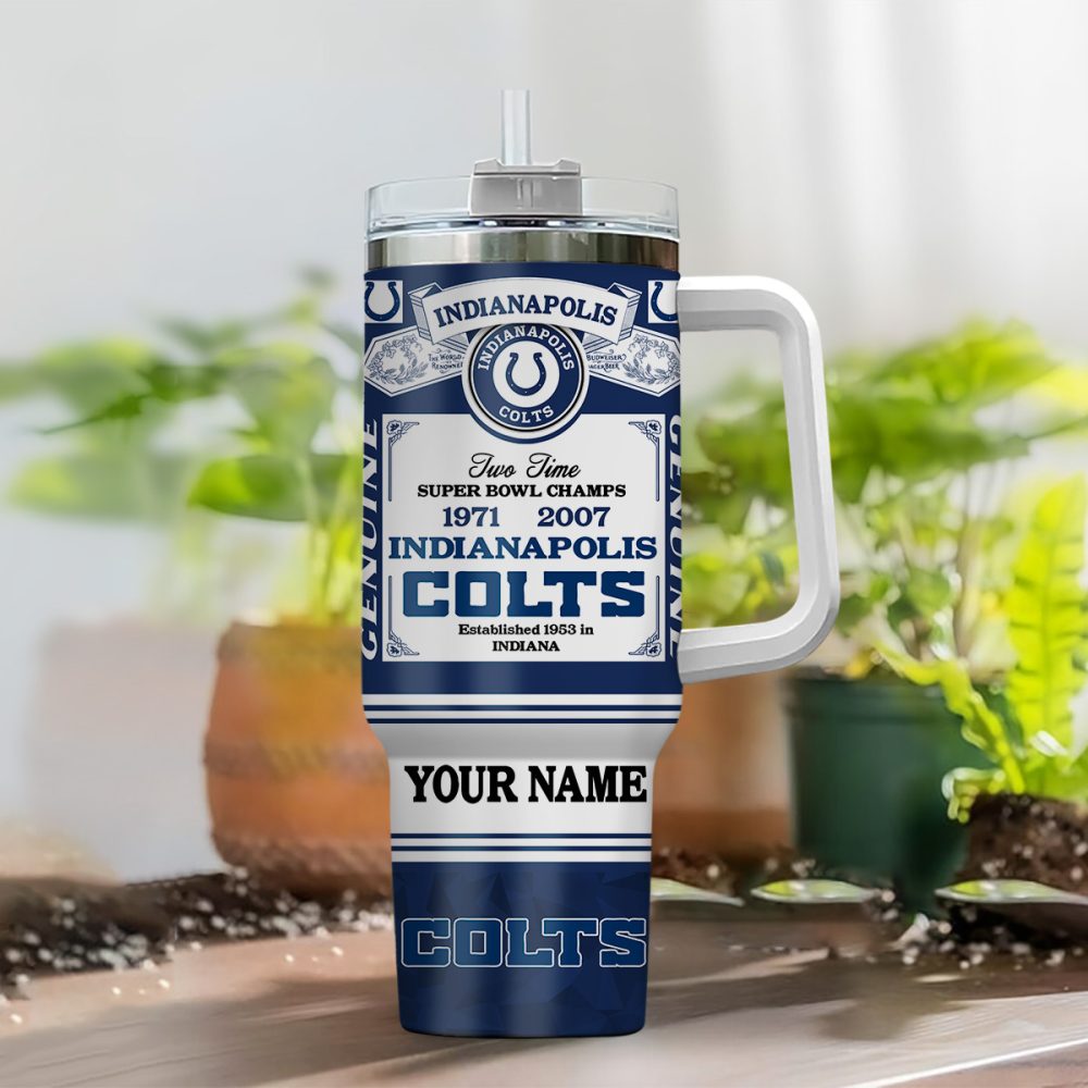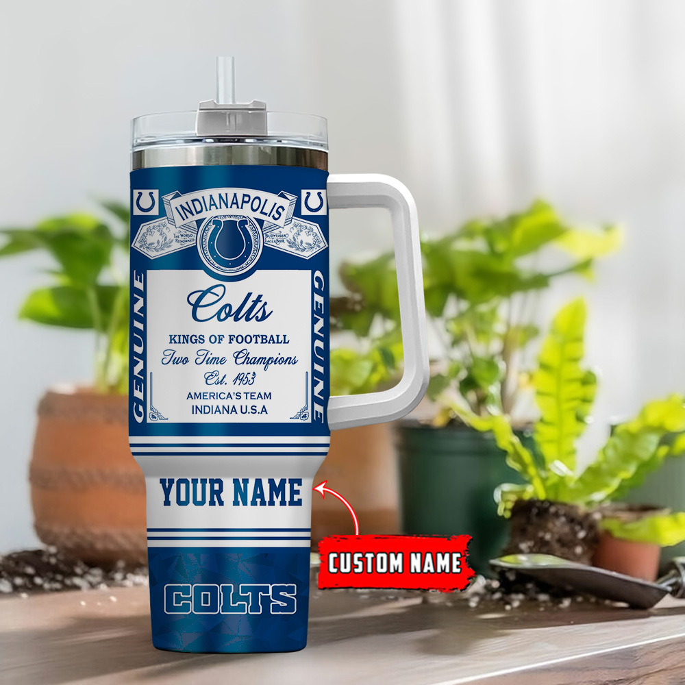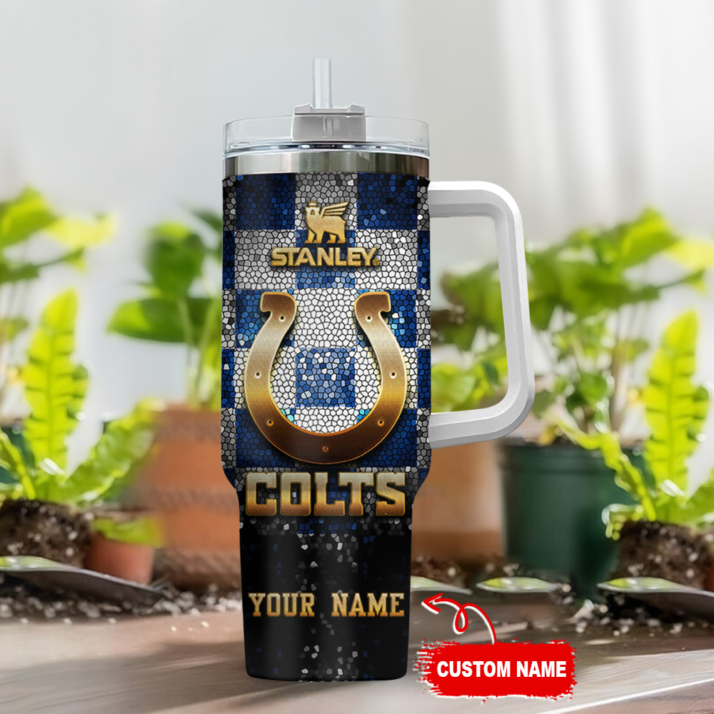 Indianapolis Colts Nfl Custom Stanley Quencher 40Oz Stainless Steel Tumbler With Handle