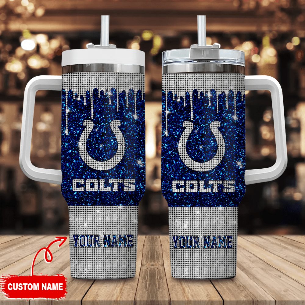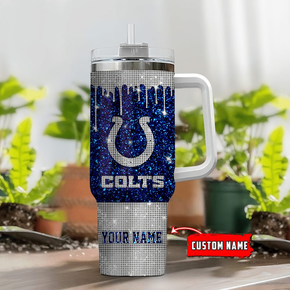 Indianapolis Colts Nfl Glitter Custom Stanley Quencher 40Oz Stainless Steel Tumbler With Handle