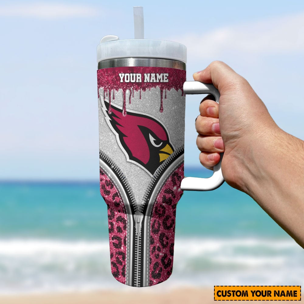 Arizona Cardinals Nfl Leather Effect Custom Stanley Quencher 40Oz Stainless Steel Tumbler With Handle
