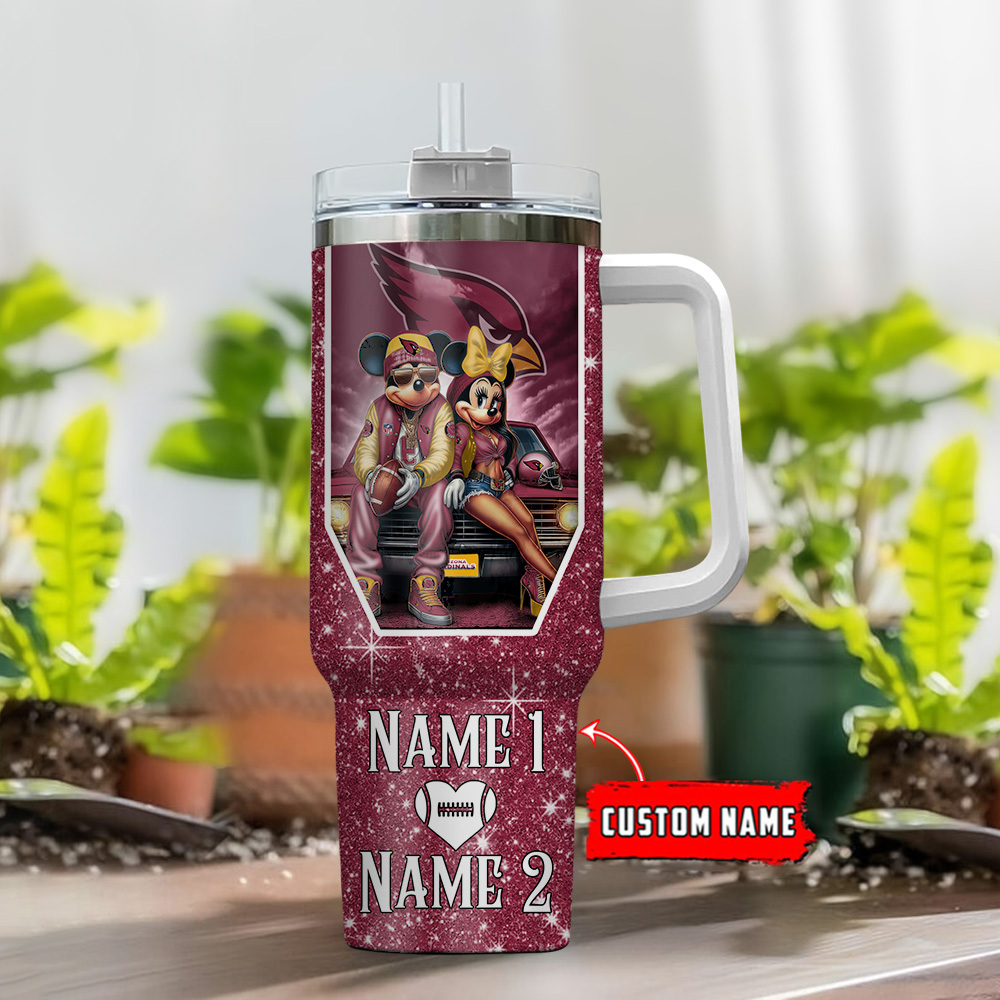 Arizona Cardinals Nfl Mickey And Minnie Couple Custom Stanley Quencher 40Oz Stainless Steel Tumbler With Handle