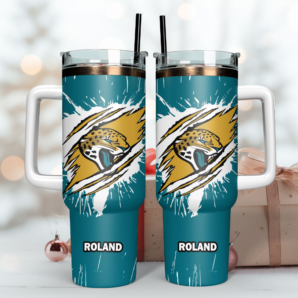 Jacksonville Jaguars Nfl 3D Logo Custom Stanley Quencher 40Oz Stainless Steel Tumbler With Handle