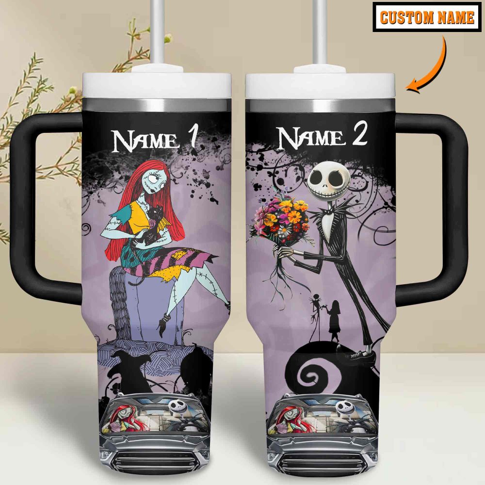 Jack And Sally Movies Custom Stanley Quencher 40Oz Stainless Steel Tumbler With Handle