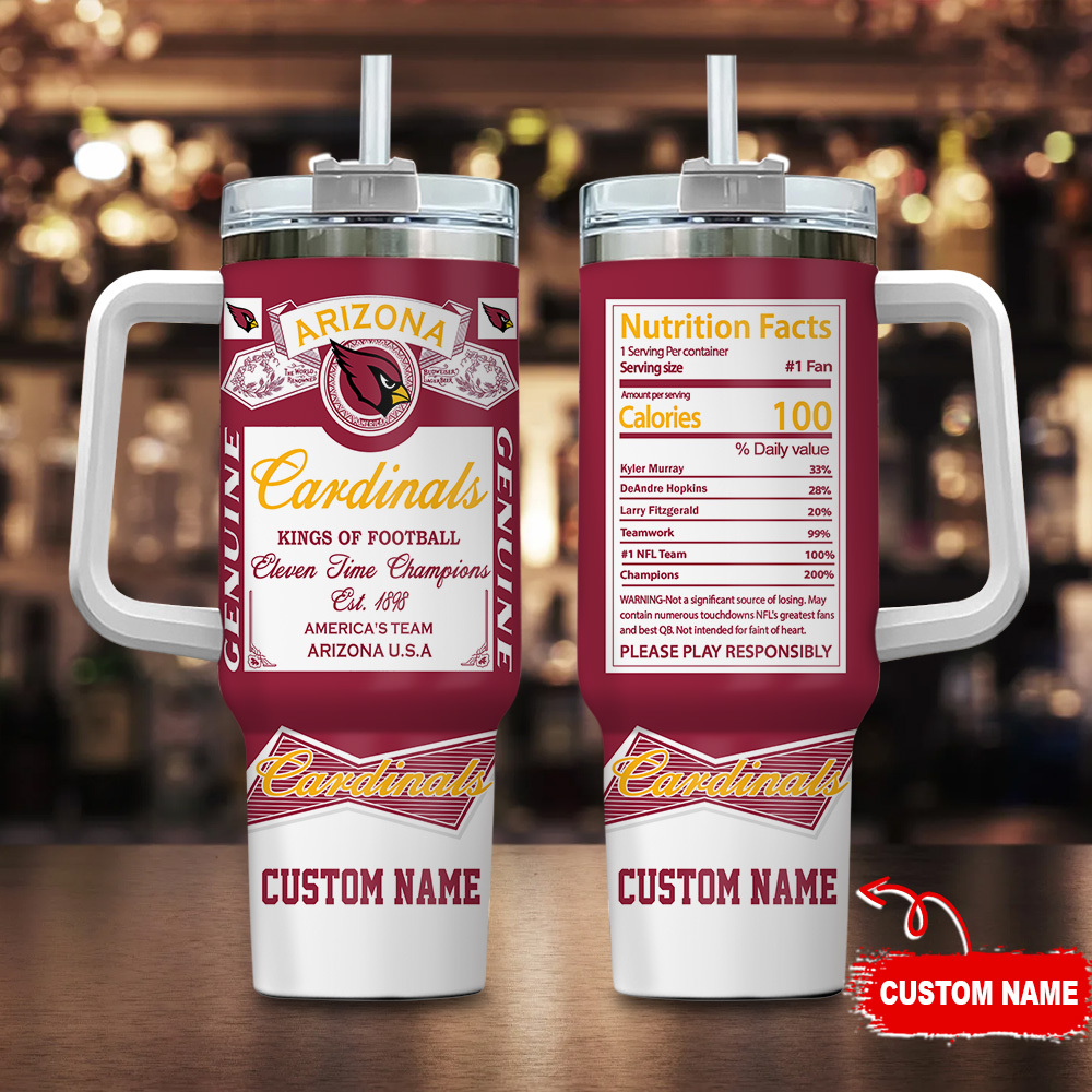Arizona Cardinals Nfl Nutrition Facts Custom Stanley Quencher 40Oz Stainless Steel Tumbler With Handle