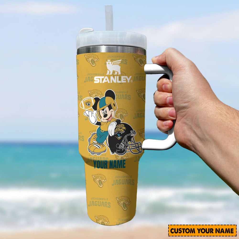 Jacksonville Jaguars Nfl Mickey Mouse Custom Stanley Quencher 40Oz Stainless Steel Tumbler With Handle