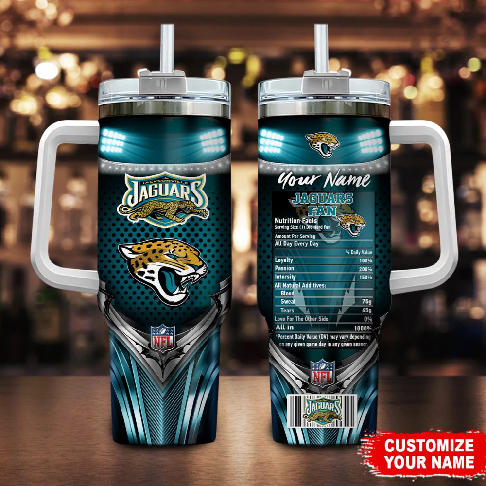 Jacksonville Jaguars Nfl Nutrition Facts Custom Stanley Quencher 40Oz Stainless Steel Tumbler With Handle