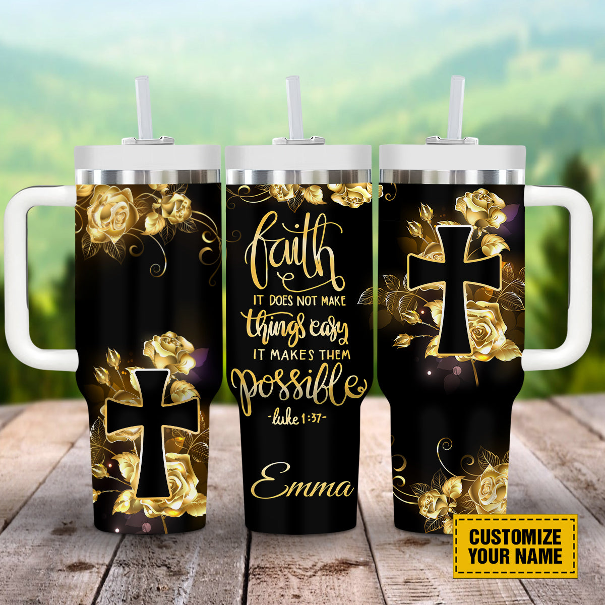 Jesus Cross Rose Custom Stanley Cup 40 oz Tumbler With Handle