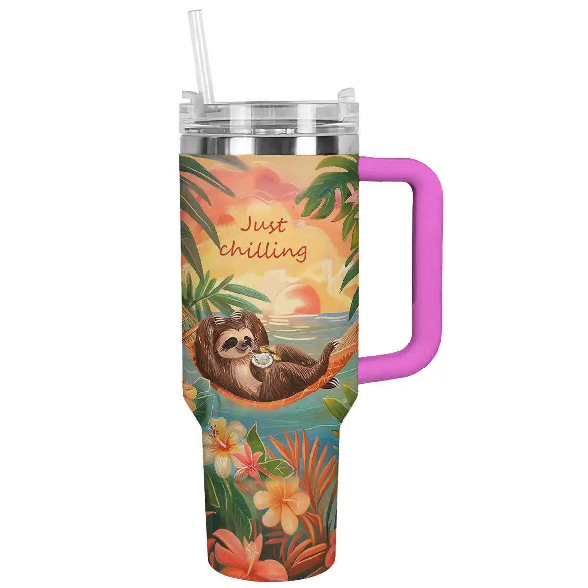 Just Chilling Sloth Custom Stanley Cup 40 oz Tumbler With Handle