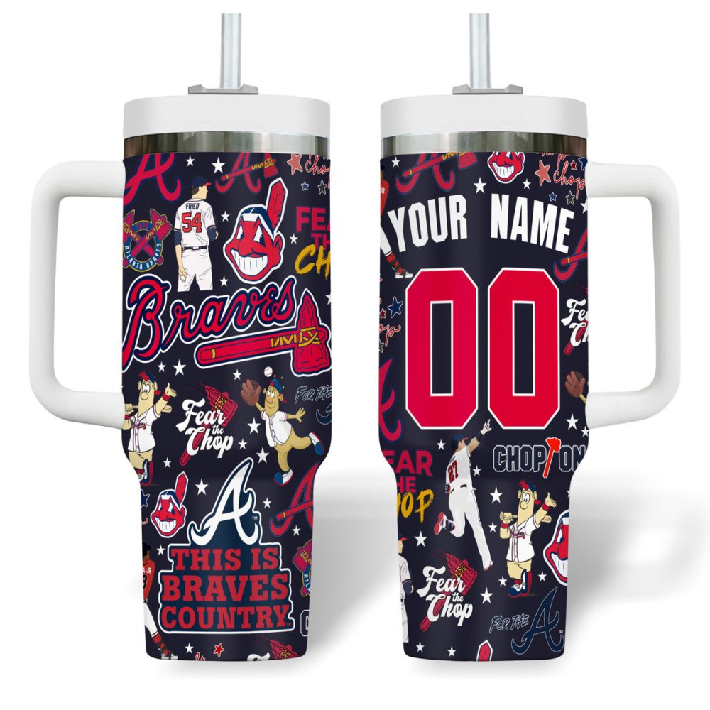 Atlanta Braves Mlb Custom Stanley Quencher 40Oz Stainless Steel Tumbler