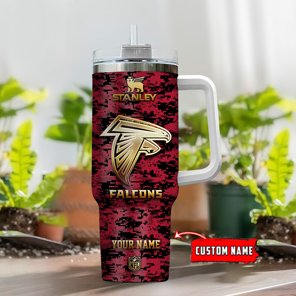 Atlanta Falcons Nfl Camo Pattern Custom Stanley Quencher 40Oz Stainless Steel Tumbler With Handle