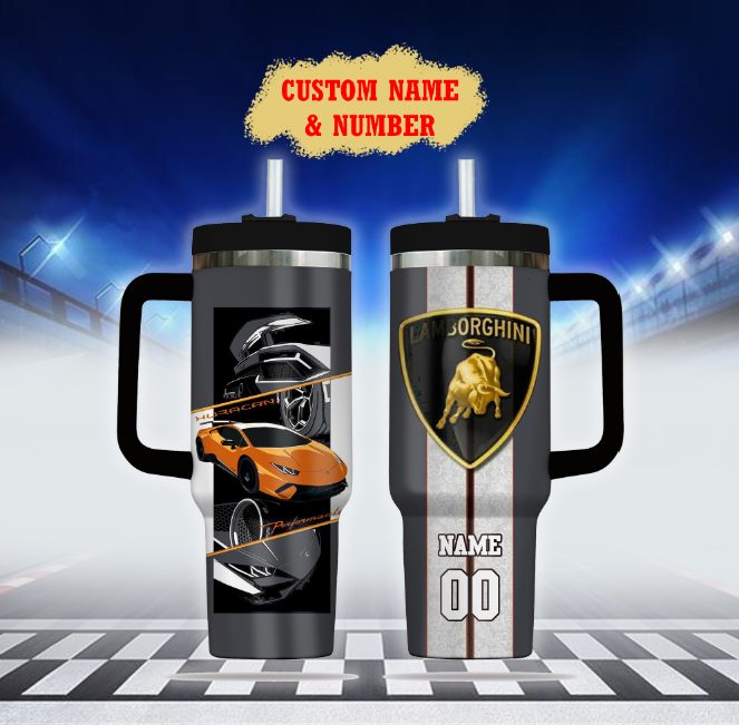Lamborghini Car Custom Stanley Quencher 40Oz Stainless Steel Tumbler