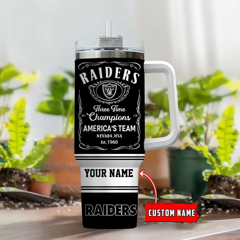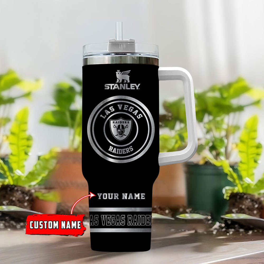 Las Vegas Raiders Nfl Custom Stanley Quencher 40Oz Stainless Steel Tumbler With Handle