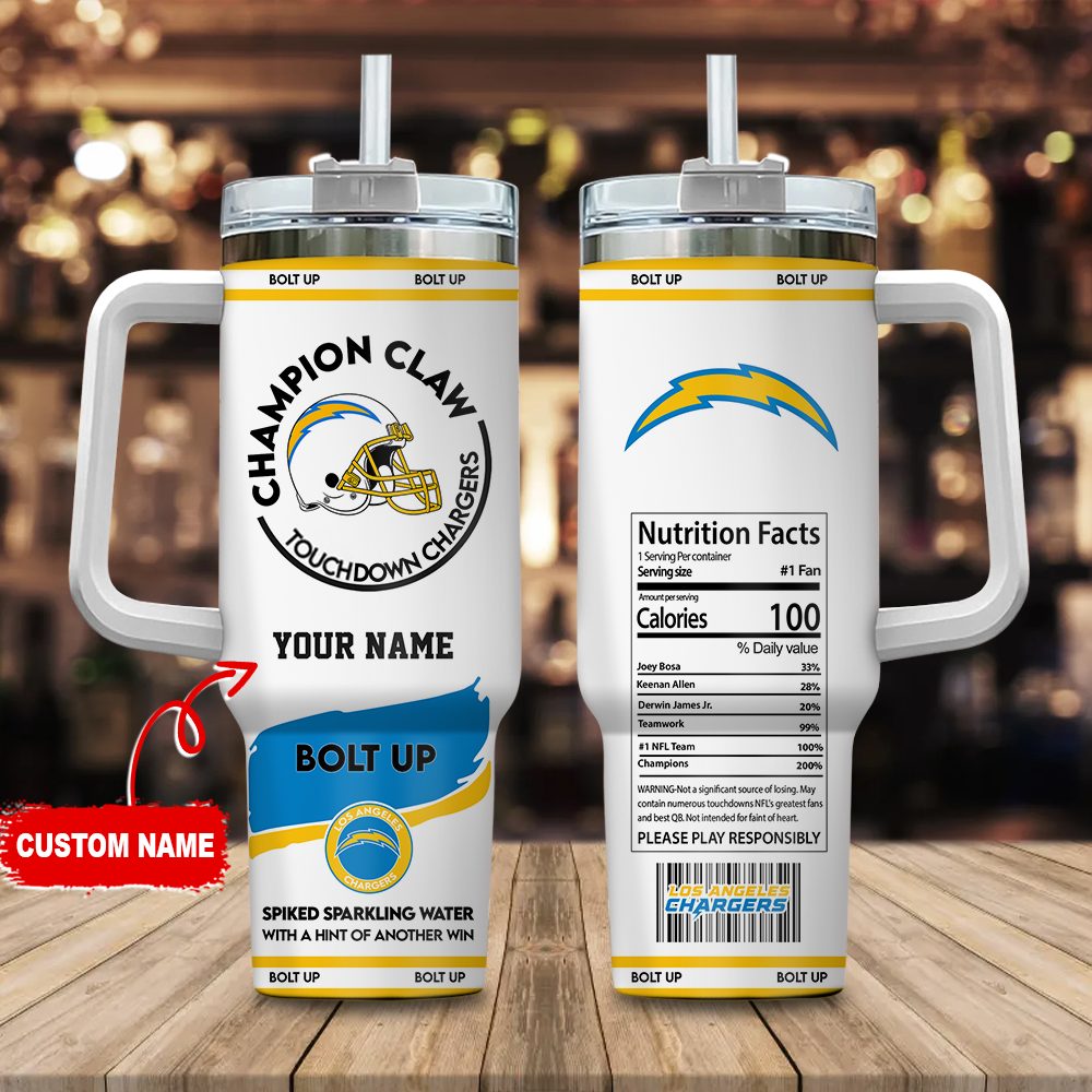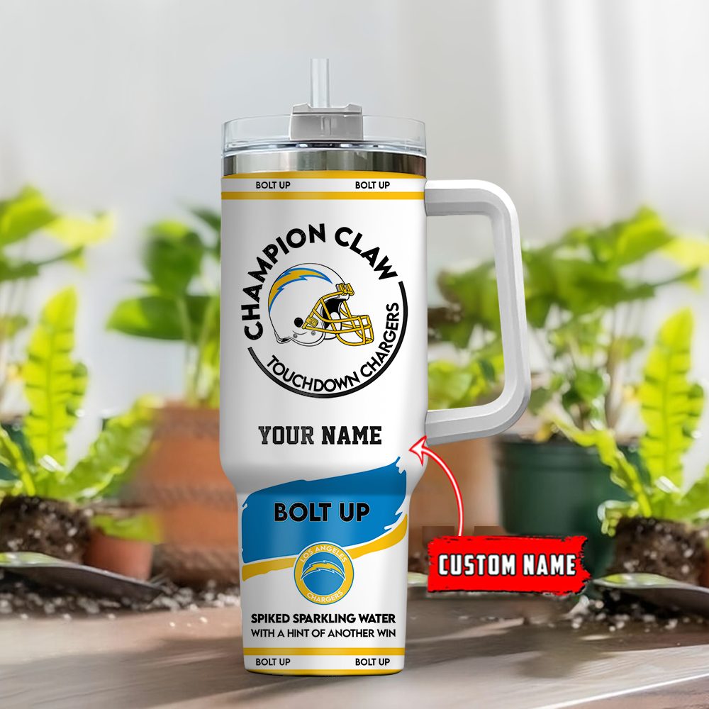Los Angeles Chargers Nfl Champion Claw Custom Stanley Quencher 40Oz Stainless Steel Tumbler With Handle