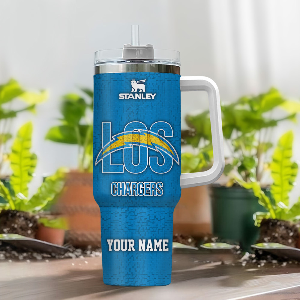 Los Angeles Chargers Nfl 3D Logo Custom Stanley Quencher 40Oz Stainless Steel Tumbler With Handle