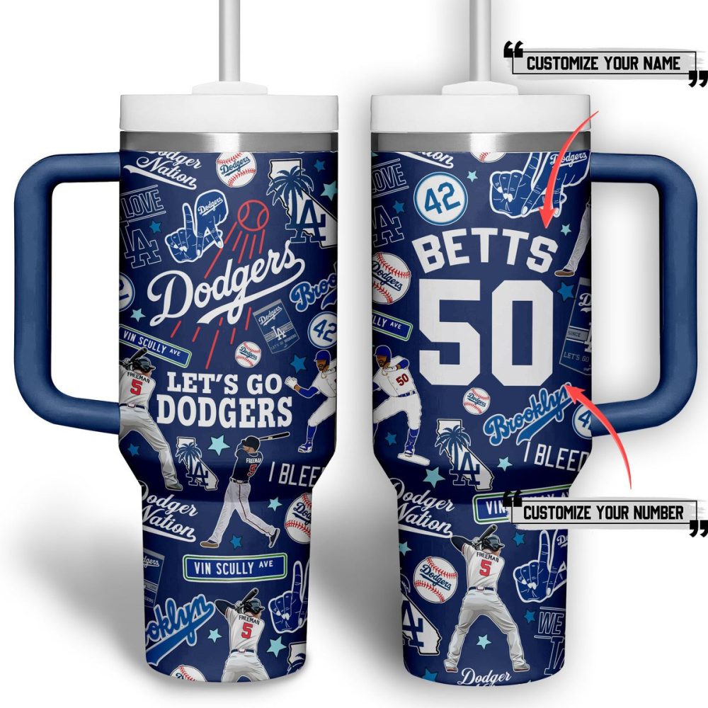 Los Angeles Dodgers Mlb Custom Stanley Quencher 40Oz Stainless Steel Tumbler