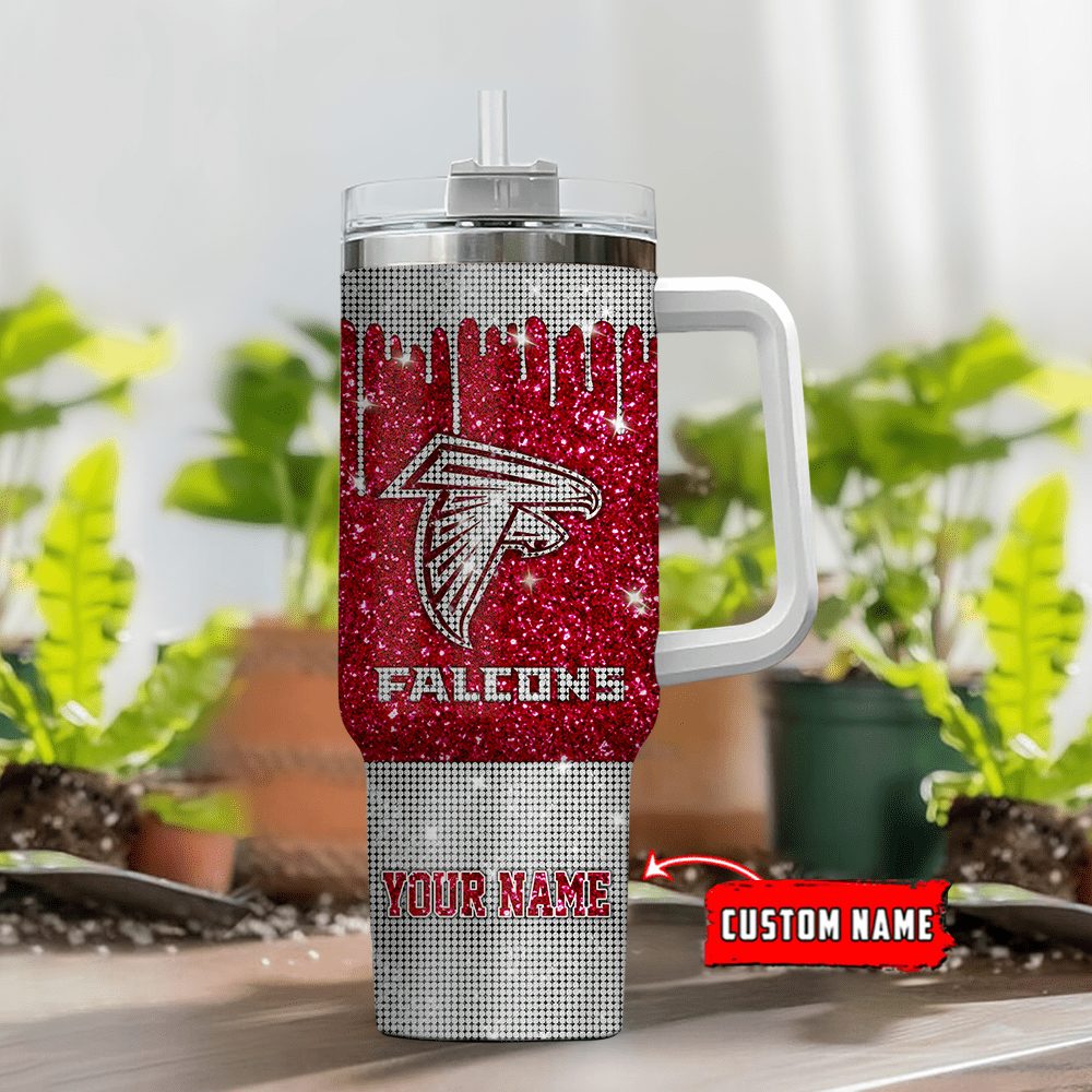 Atlanta Falcons Nfl Glitter Custom Stanley Quencher 40Oz Stainless Steel Tumbler With Handle