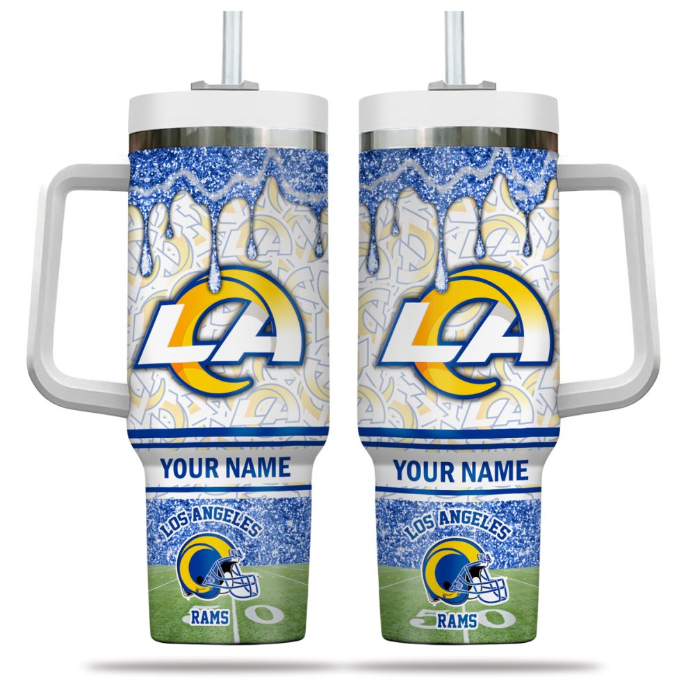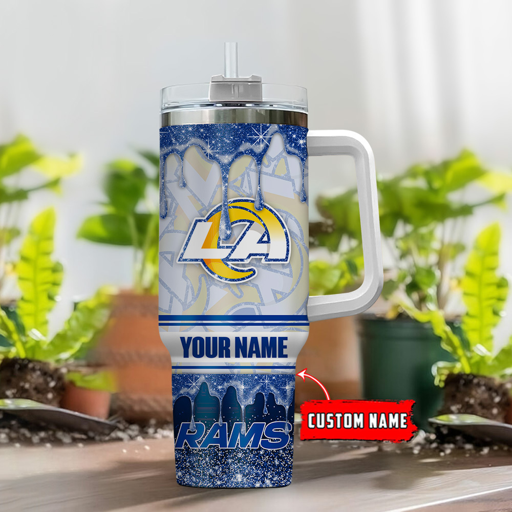 Los Angeles Rams Nfl Glitter Custom Stanley Quencher 40Oz Stainless Steel Tumbler With Handle