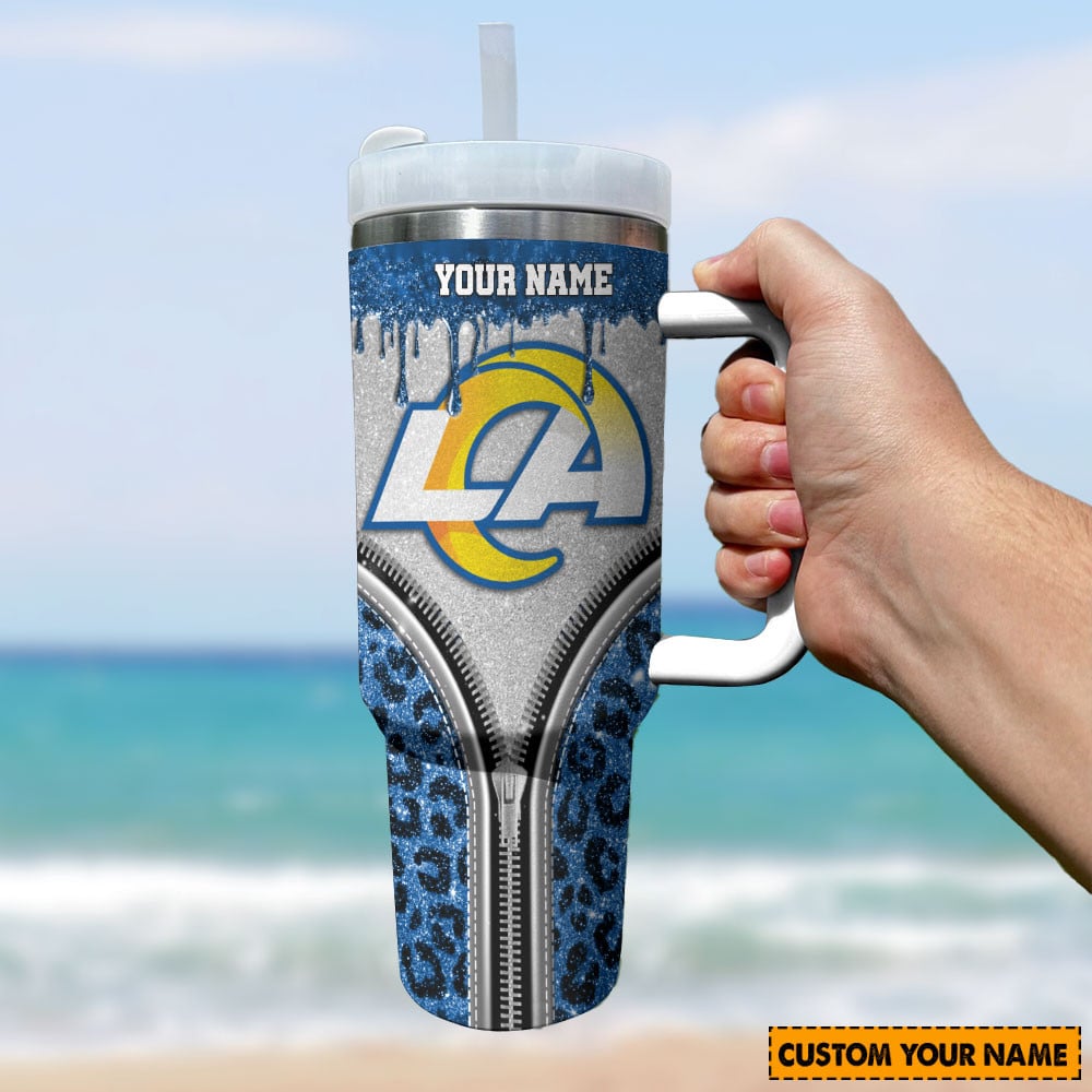 Los Angeles Rams Nfl Glitter Leopard Print Custom Stanley Quencher 40Oz Stainless Steel Tumbler With Handle