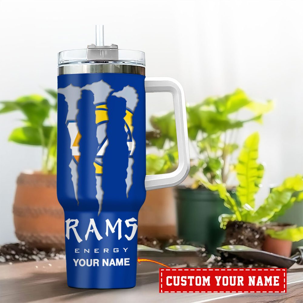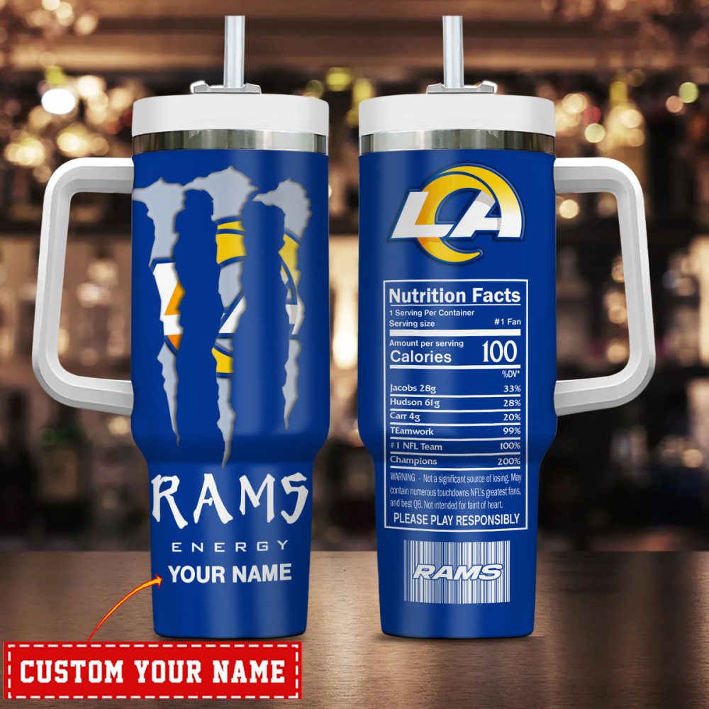 Los Angeles Rams Nfl Energy Nutrition Facts Custom Stanley Quencher 40Oz Stainless Steel Tumbler With Handle