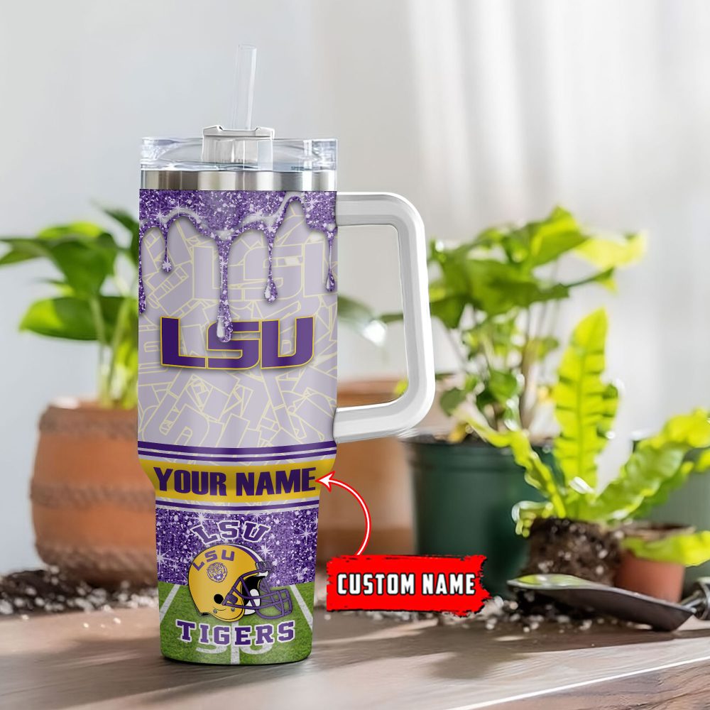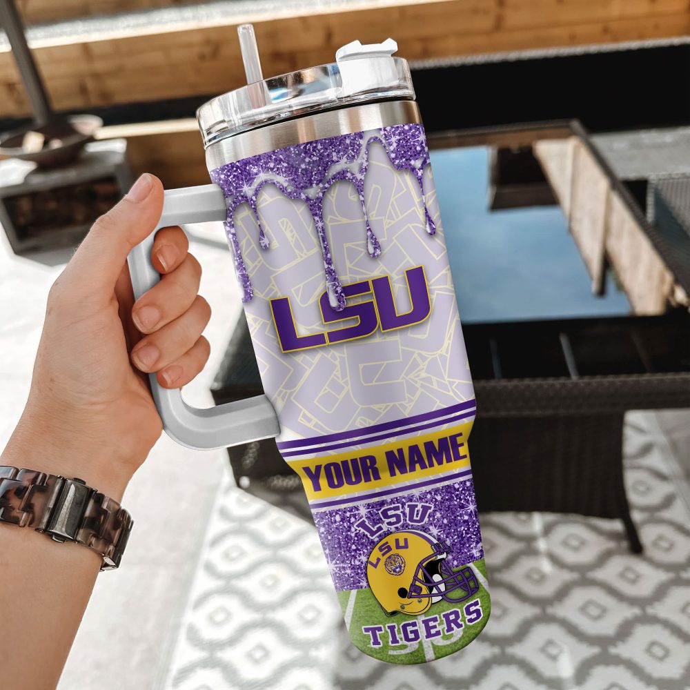 Lsu Tigers Ncaa Glitter Custom Stanley Quencher 40Oz Stainless Steel Tumbler With Handle