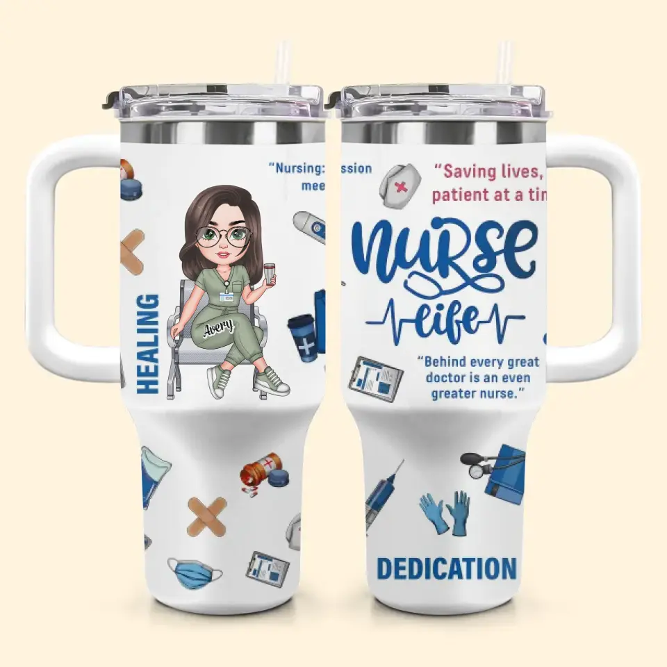 Love Nurse Life Custom Stanley Cup 40 oz Tumbler With Handle