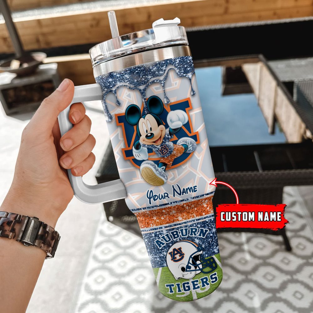 Auburn Tigers Ncaa Mickey Mouse Glitter Custom Stanley Quencher 40Oz Stainless Steel Tumbler With Handle