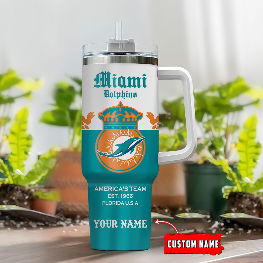 Miami Dolphins Nfl Custom Stanley Quencher 40Oz Stainless Steel Tumbler
