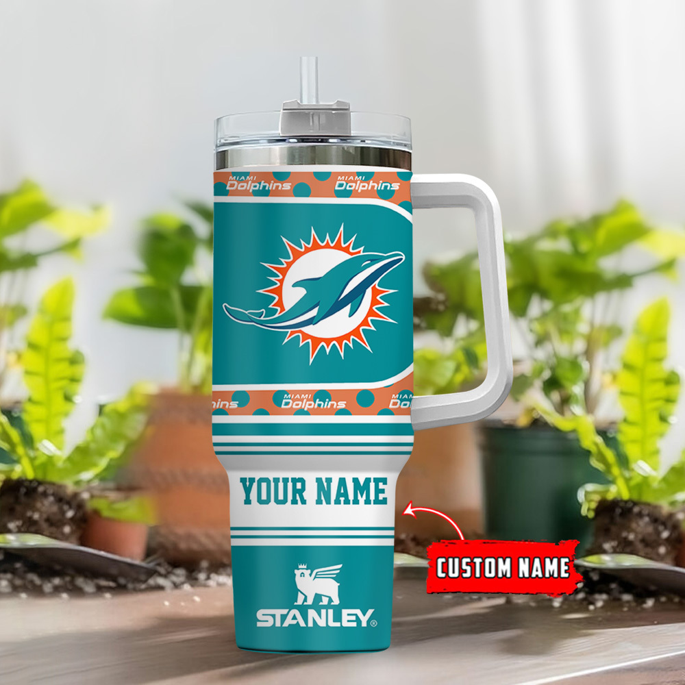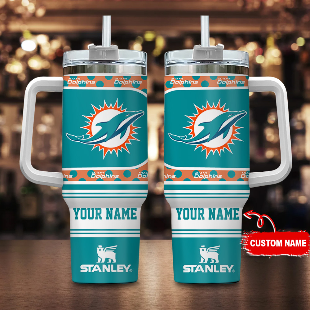 Miami Dolphins Nfl Custom Stanley Quencher 40Oz Stainless Steel Tumbler With Handle